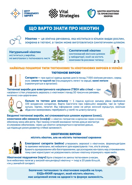 З метою підвищення рівня обізнаності та формування відповідального ставлення до власного здоров’я прошу розглянути інформаційні матеріали, розроблені державною установою «Центр громадського здоров’я» Міністерства охорони здоров’я України, спрямовані на формування здорового способу життя, зокрема на профілактику тютюнопаління.