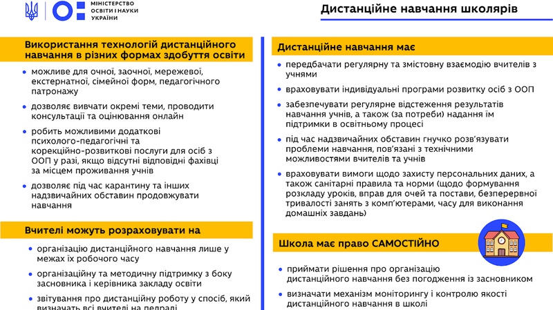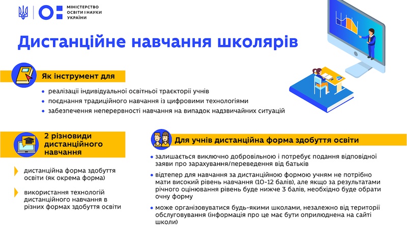 Дистанцiйне навчання — це форма навчання з використанням комп’ютерних і телекомунiкацiйних технологiй, якi забезпечують iнтерактивну взаємодiю вчителів та учнів на рiзних етапах навчання i самостiйну роботу з матерiалами iнформацiйної мережi.
